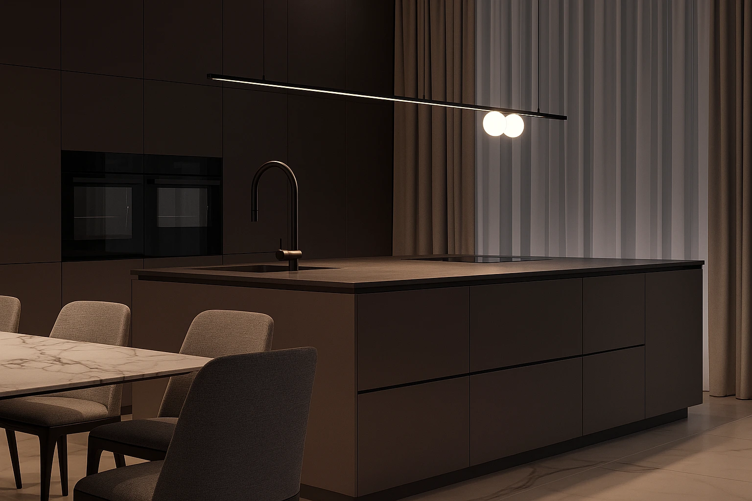 Nella progettazione di soluzioni di illuminazione a più livelli, utilizziamo regolarmente lampade decorative di design per costituire la fonte di illuminazione primaria e per completare l’atmosfera e l’armonia visiva dell’ambiente. La lampada a sospensione funge da fonte di illuminazione primaria, mentre le lampade decorative di design forniscono sia l’illuminazione d’atmosfera che l’armonia visiva dell’ambiente.