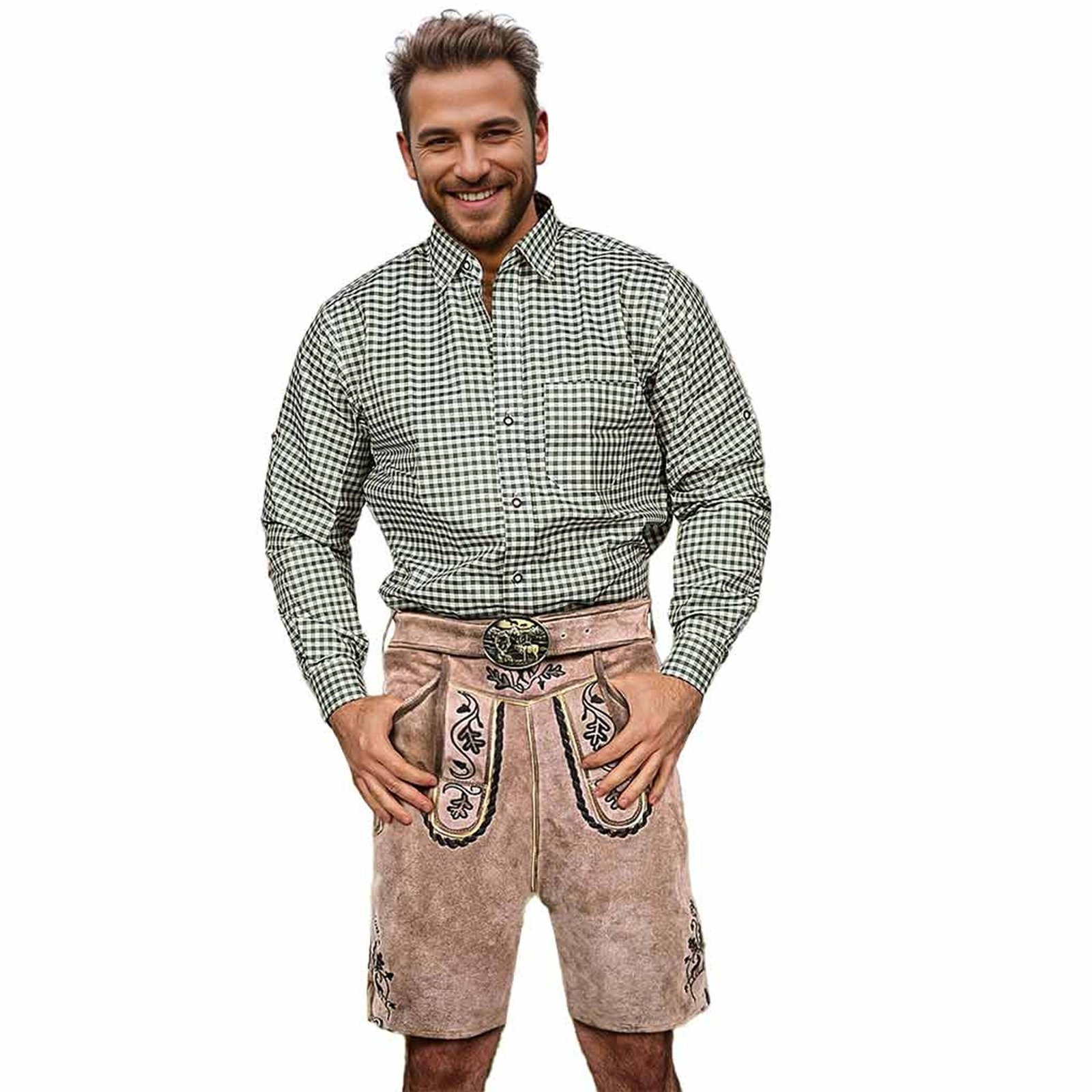 - Trachten Shirt: Typically checkered (red, green, or blue) or crisp white shirts.