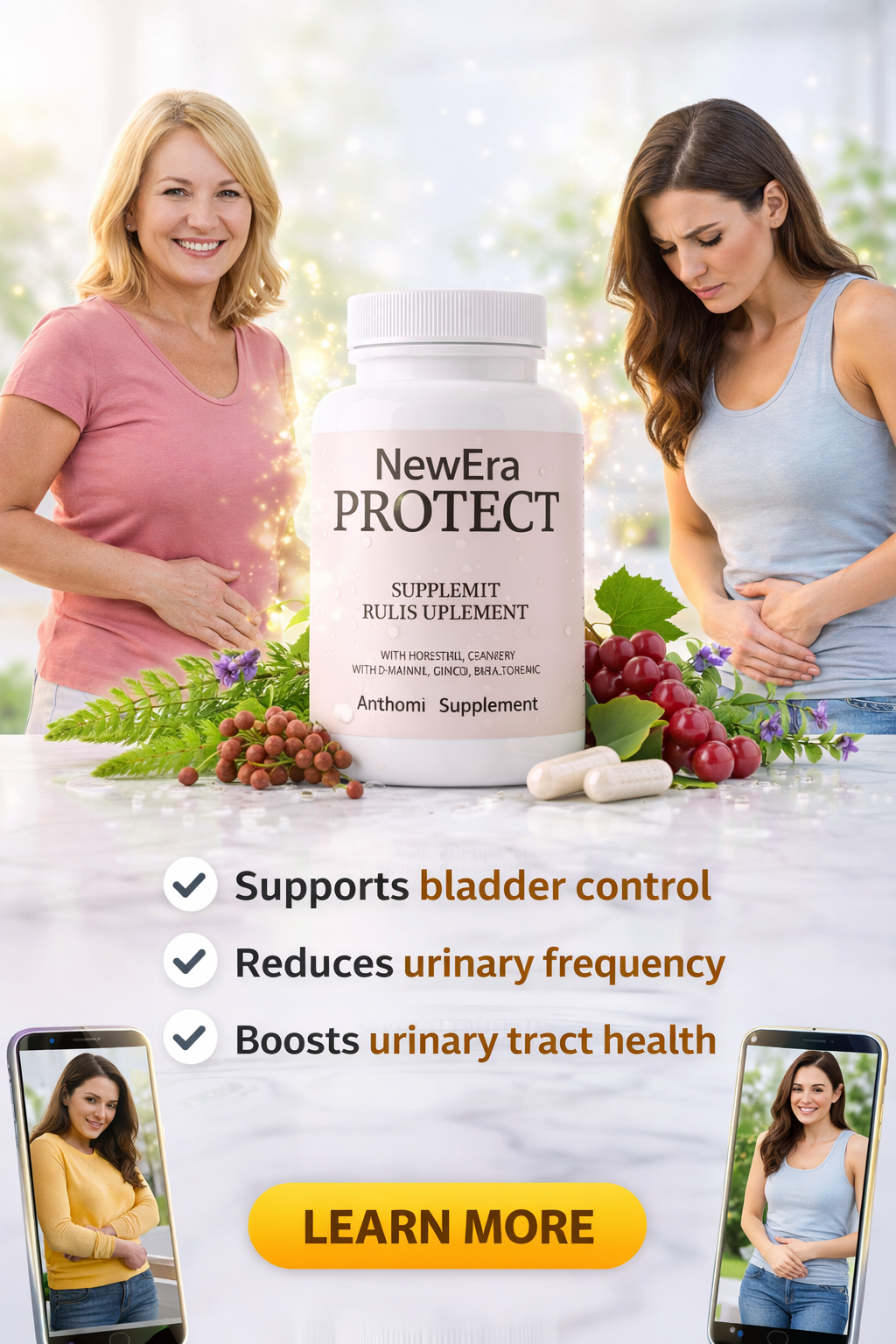 New Era Protect is Natural bladder support formulas often include plant-based ingredients known for their benefits:
