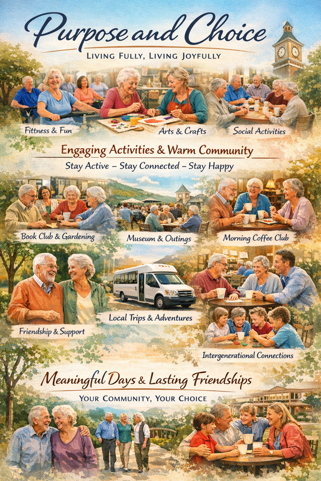 In our independent living community, you are presented with a menu of options every day. You might choose a morning exercise class, follow-ed by a craft workshop, an afternoon card game, or a group outing to a local museum. Book clubs meet weekly, gardening groups gather in community plots, and movie nights bring neighbors together for shared entertainment.